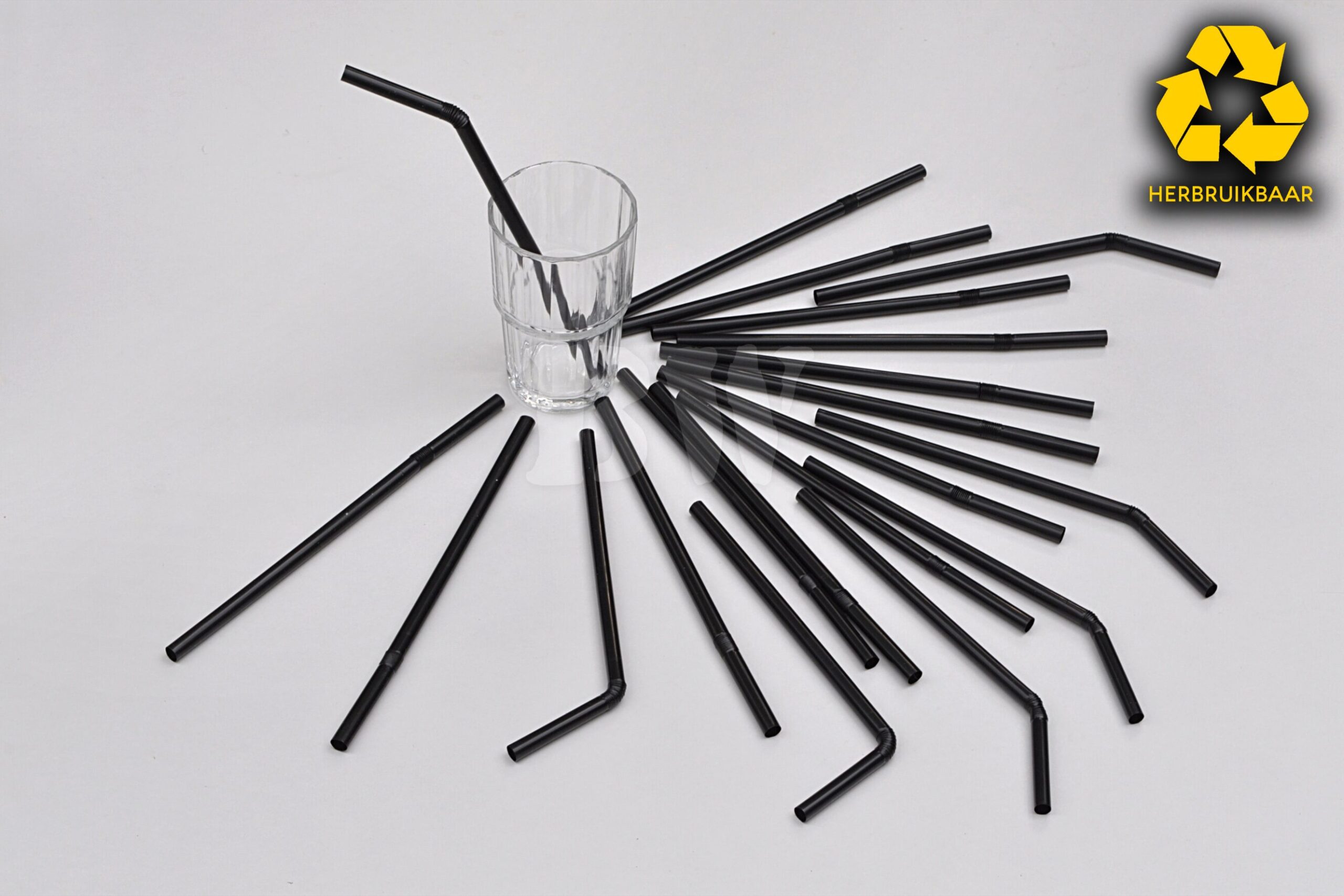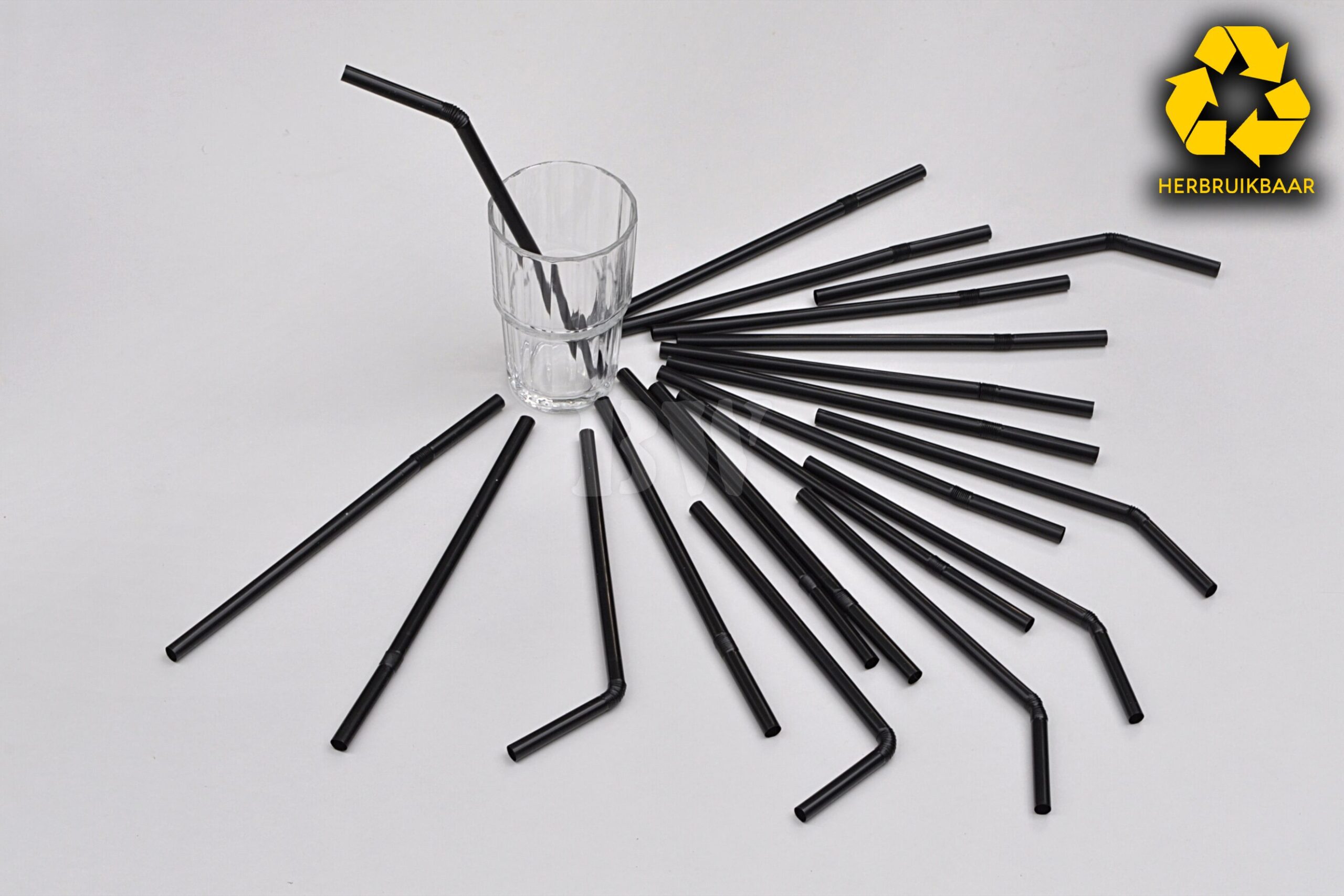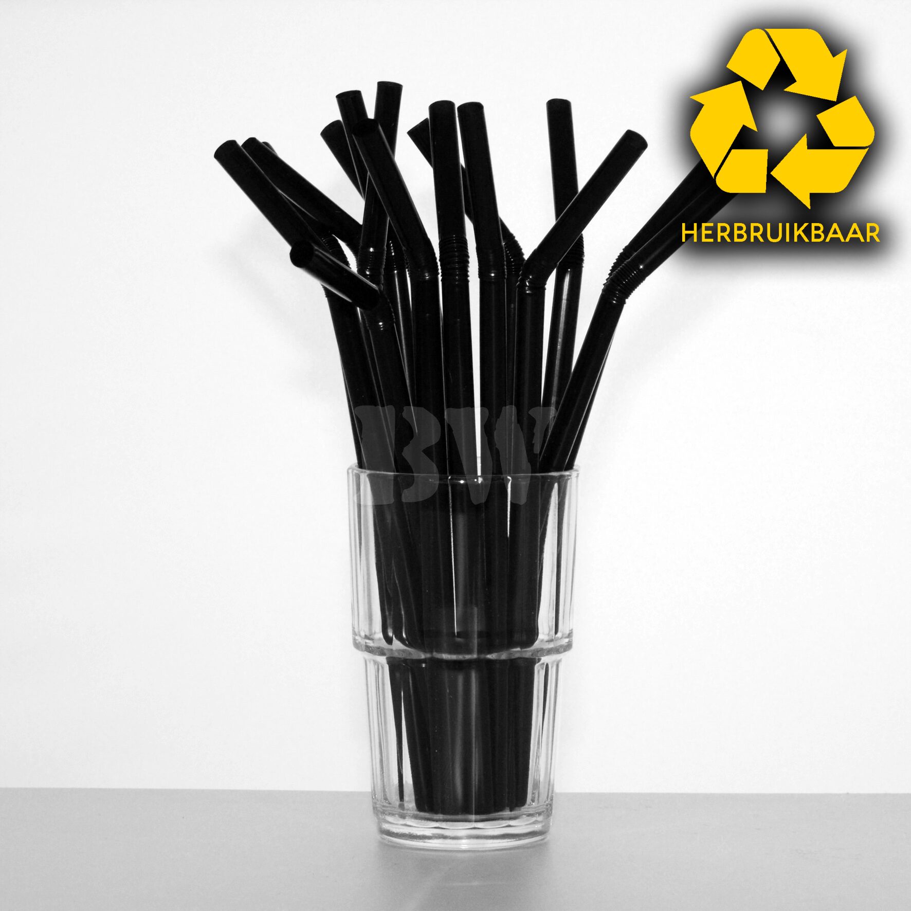 Herbruikbare Rietjes BW: 8mm diameter, 24 cm lang.
